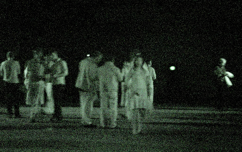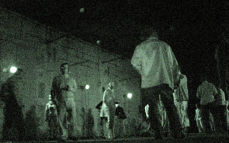Multitud (Crowd) is an installation designed as a dark and empty space where people are allowed to walk freely with no specific direction or purpose. Equiped with headphones, visitors have a receptor that allowing them to alternate between 4 separate channels at any time: a soliloquy, dialogs between the members of a family, political speeches, and the amplified sound of the visitors footsteps on the exhibition's floor. The installation addresses issues of individuality, identity, social dialog and isolation in the context of an anonymous crowd that comes together and dissipates after the exhibition.